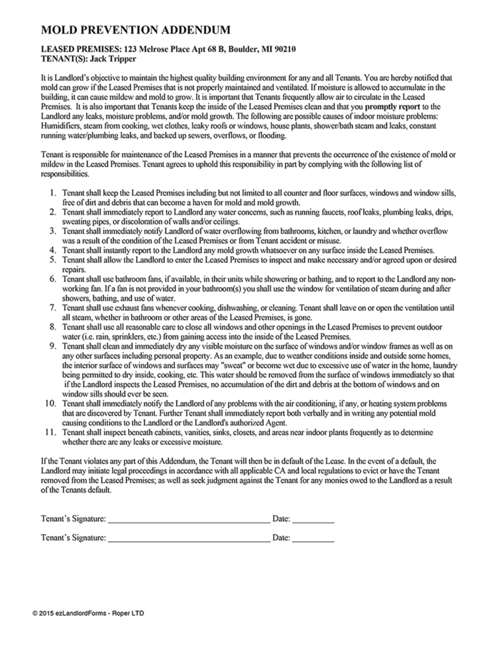 Can My Tenant Have A Mold Test Done On My Property Without My Permission Who Would Pay For This I Had A Leak Which Has Been Repaired There Is No Evidence Of